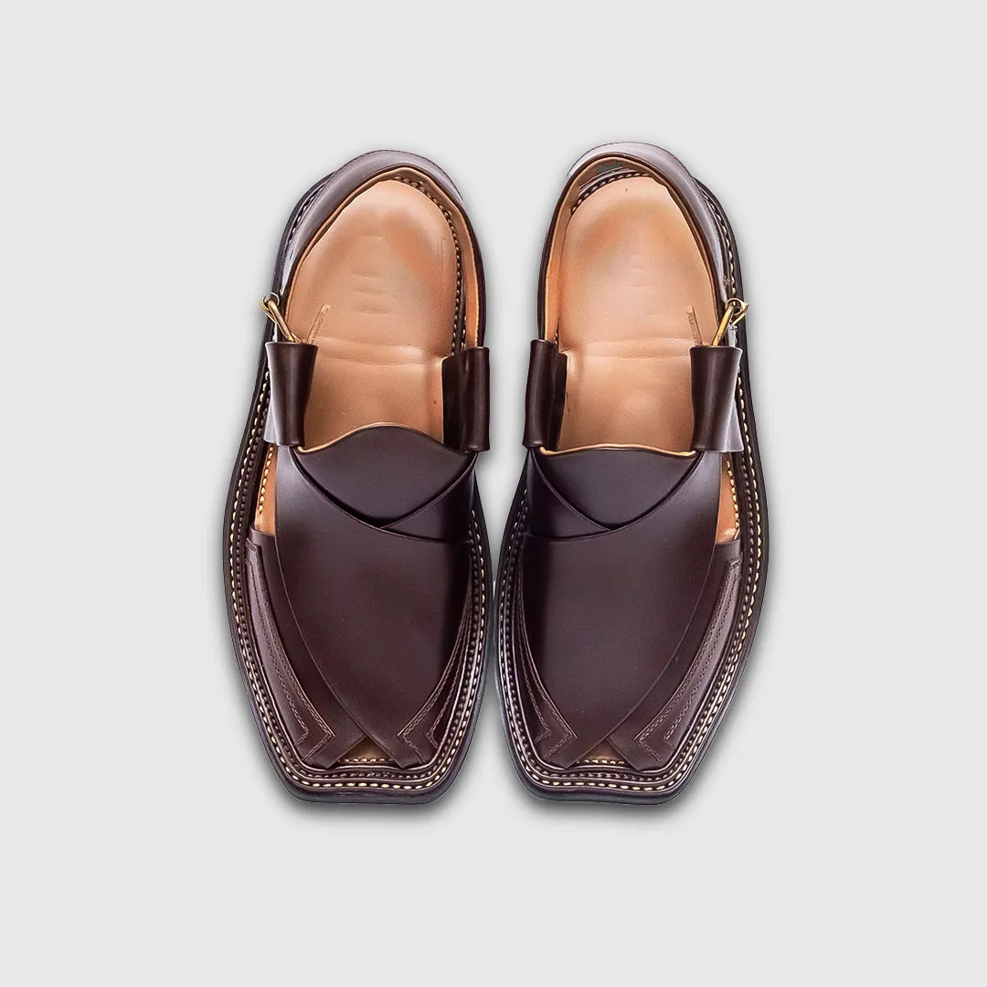 The back strap is adjustable for a better grip, and the overall silhouette follows traditional Peshawari styling — making this chappal both aesthetic and functional.