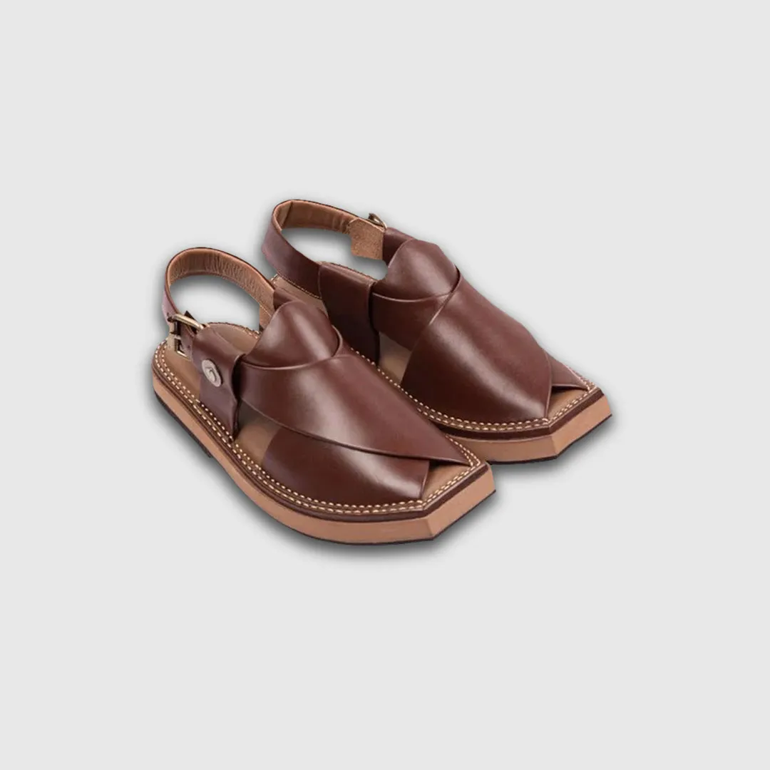 Every pair of handmade Peshawari chappal speaks of precision, patience, and skill. Crafted by artisans from regions like Charsadda and Kohat, these chappals involve hours of hand-stitching, sole layering, and leather treatment. The Burgundy Kaptaan Peshawari Chappal is no different. Made from genuine cowhide leather, it features: