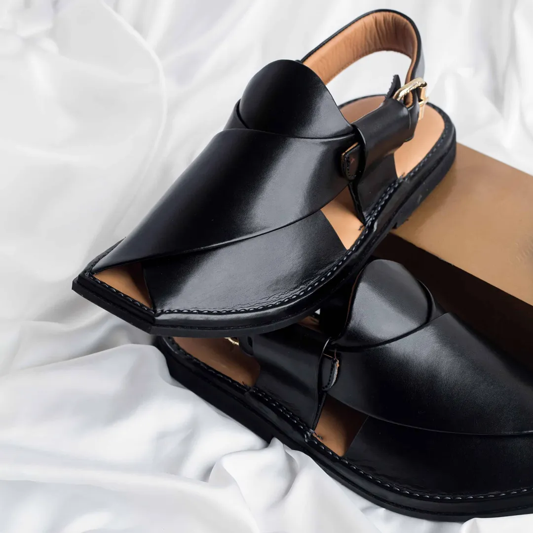 Every pair of Premium Peshawari Chappals Black is meticulously handcrafted using premium-grade leather. The expert finishing and strong sole reflect the dedication of artisans who have been perfecting the Peshawari Chappal design for generations. The straps of the Black Peshawari Chappal are perfectly balanced for durability and style, ensuring long-lasting wear.